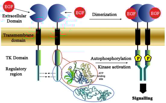 - Kovacs, E.; Zorn, J.A.; Huang, Y.; Barros, T.; Kuriyan, J. A structural perspective on the regulation of the epidermal growth factor receptor. Annu. Rev. Biochem. 2015, 84, 739–764. [Google Scholar] [CrossRef] [PubMed]