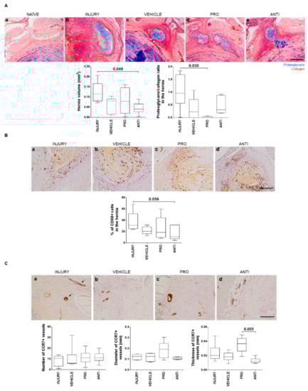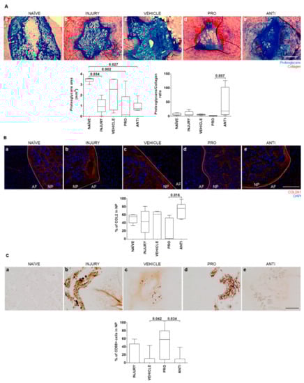 2.2. Comparison of Intradiscal Pro-/Anti-Inflammatory Treatments in NP ECM