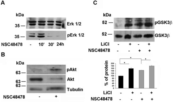 In addition, NSC48478 induced inactivation of ERK1/2 signalling and phosphorylation of Akt with consequent inactivation of GSK3β.