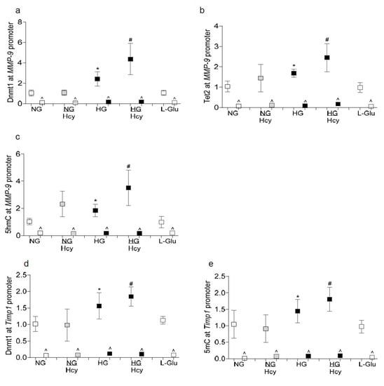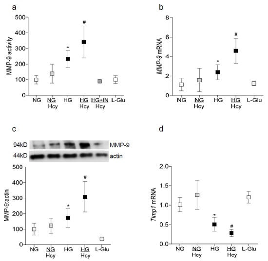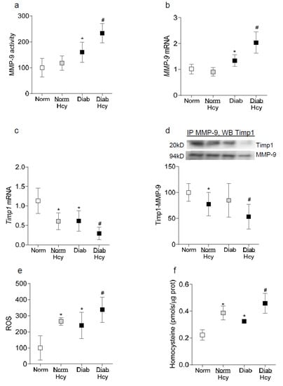 - Solini, A.; Santini, E.; Nannipieri, M.; Ferrannini, E. High glucose and homocysteine synergistically affect the metalloproteinases-tissue inhibitors of metalloproteinases pattern, but not TGFB expression, in human fibroblasts. Diabetologia 2006, 49, 2499–2506. [Google Scholar] [CrossRef] [PubMed]