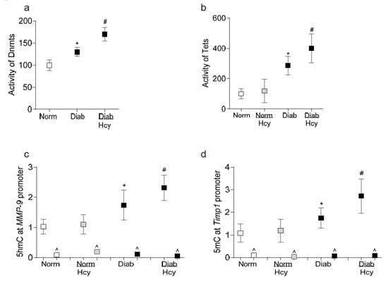- Pushpakumar, S.; Kundu, S.; Narayanan, N.; Sen, U. DNA hypermethylation in hyperhomocysteinemia contributes to abnormal extracellular matrix metabolism in the kidney. FASEB J. 2015, 29, 4713–4725. [Google Scholar] [CrossRef]