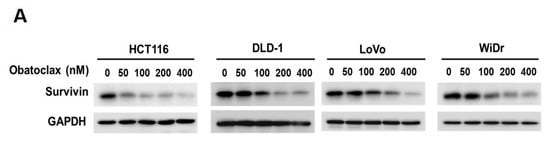 2.3. Survivin Downregulation is Fundamental to Obatoclax to Elicit Colorectal Cancer Cell Death