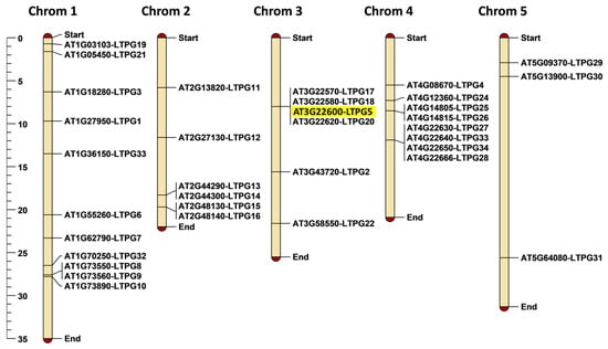 2.2. Localization of Arabidopsis LTPg Genes on Chromosomes