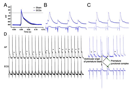 Prado, N.J.; Muñoz, E.M.; Farias Altamirano, L.E.; Aguiar, F.; Ponce Zumino, A.Z.; Sánchez, F.J.; Miatello, R.M.; Pueyo, E.; Diez, E.R. Reperfusion Arrhythmias Increase after Superior Cervical Ganglionectomy Due to Conduction Disorders and Changes in Repolarization. Int. J. Mol. Sci. 2020, 21, 1804. https://doi.org/10.3390/ijms21051804