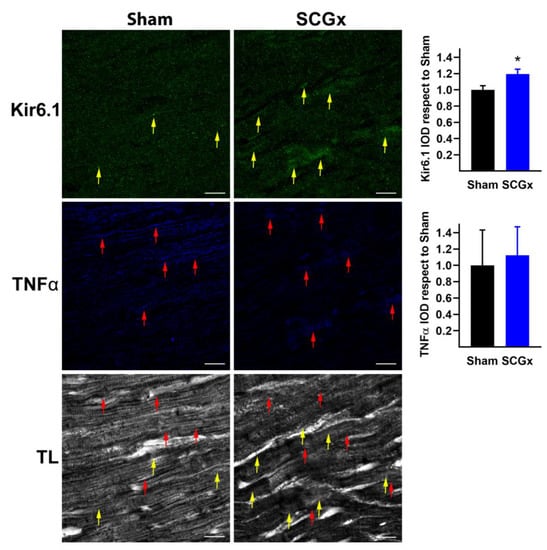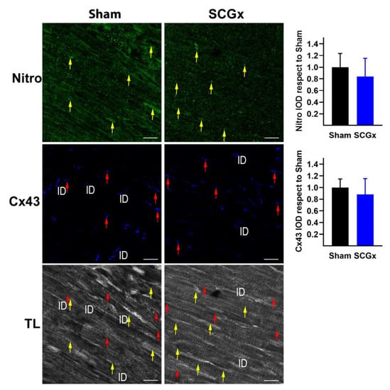 2.3. SCGx Increased KATP Channels and Connexin 43 Lateralization, Without Changing TNFα or Nitrotyrosine