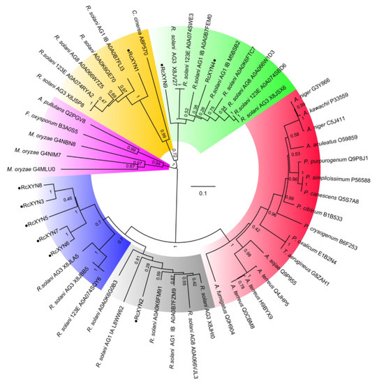 4.2. Identification of GH10 Xylanase Genes in Rhizoctonia Cerealis
