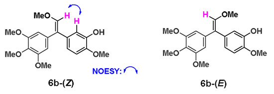 6b-(Z) and 6b-(E) after HPLC preparation. Selected NOE correlations of 6b-(Z).