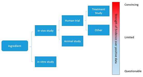 Gastrointestinal (GI) disorders can be functional or structural, with functional GI disorders as the more common type among the two [8], and both types of disorders may cause severe impairment of life quality and psychological wellbeing, and even shortened life expectancy [9,10,11]. Many nutraceutical products have appeared on the market proposed as beneficial for gastrointestinal disorders. In this review, we make our attempt to evaluate several commonly seen products based on a standard established from the strength of available evidence (Figure 1).