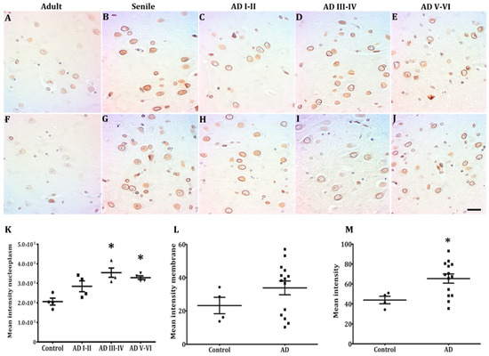 - Gómez-Isla, T.; Hollister, R.; West, H.; Mui, S.; Growdon, J.H.; Peterson, R.C.; Parisi, J.E.; Hyman, B.T. Neuronal loss correlates with but exceeds neurofibrillary tangles in Alzheimer’s disease. Ann. Neurol. 1997, 41, 17–24. [Google Scholar] [CrossRef] [PubMed]
