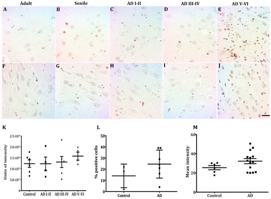 - Nagy, Z.; Esiri, M.M.; Smith, A.D. Expression of cell division markers in the hippocampus in Alzheimer’s disease and other neurodegenerative conditions. Acta Neuropathol. 1997, 93, 294–300. [Google Scholar] [CrossRef] [PubMed]