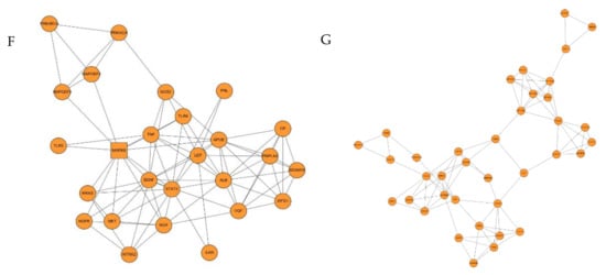 Cluster 3 contains 35 nodes and 187 edges with a score of 11. The seed node of this cluster is IL6 (Interleukin 6) which is a potent inducer of the acute phase response. It plays an essential role in the final differentiation of B-cells into Ig-secreting cells and induces nerve cell differentiation. IL6 is also involved in the regulation of neuroinflammatory response and negative regulation of neurogenesis. With meta-analysis results and many individual studies approved, depression is associated with the activation of the immune system, including increased expression of proinflammatory cytokines such as TNF-α and IL-6 [].
