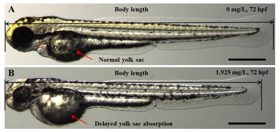 2.2. Embryo Body Length and Yolk Sac Area Impacts