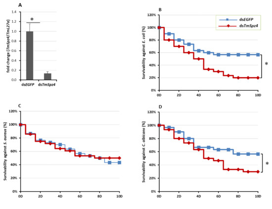 2.4. Effect of TmSpz4 RNAi on T. Molitor Survivability