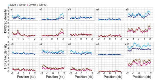 - Venkatesh, I.; Simpson, M.T.; Coley, D.M.; Blackmore, M.G. Epigenetic profiling reveals a developmental decrease in promoter accessibility during cortical maturation in vivo. Neuroepigenetics 2016, 8, 19–26. [Google Scholar] [CrossRef]