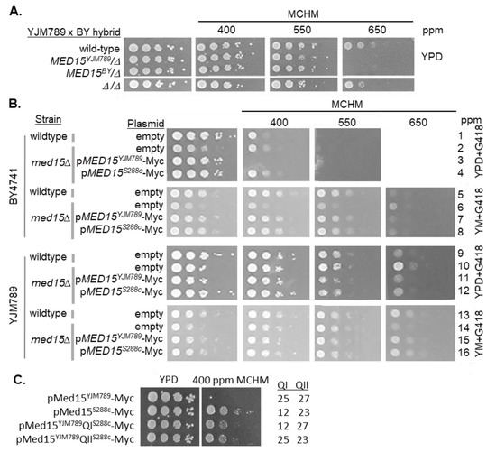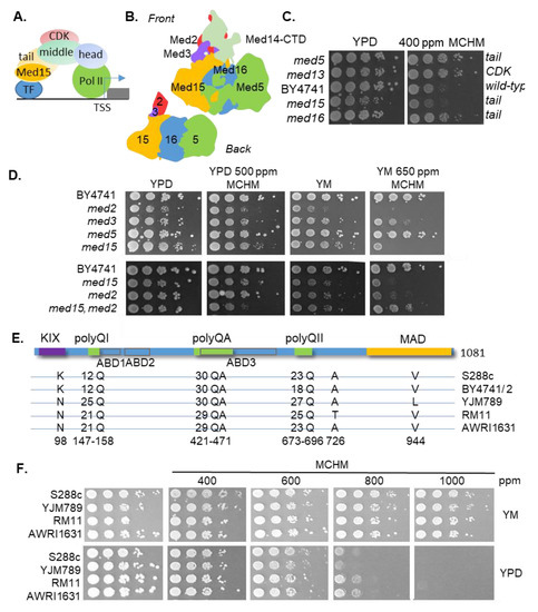 Gallagher, J.E.G.; Ser, S.L.; Ayers, M.C.; Nassif, C.; Pupo, A. The Polymorphic PolyQ Tail Protein of the Mediator Complex, Med15, Regulates the Variable Response to Diverse Stresses. Int. J. Mol. Sci. 2020, 21, 1894. https://doi.org/10.3390/ijms21051894