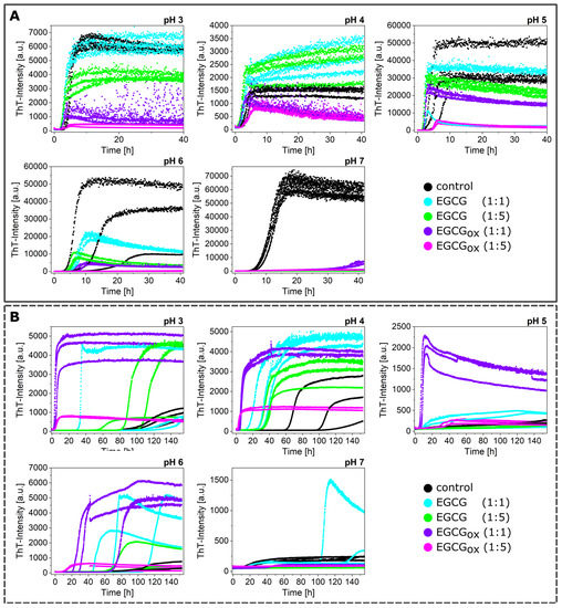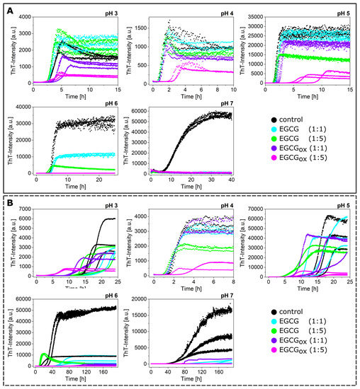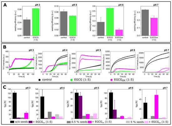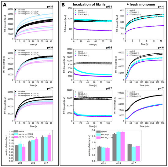 3.4. Experiments in the Presence of Seeds Pre-Incubated with EGCG and EGCGox