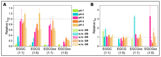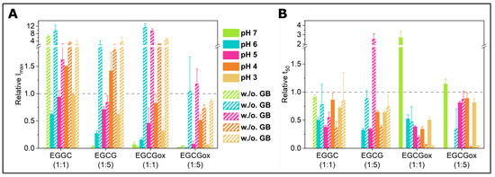 | Conditions | EGCG (1:1) | EGCG (1:5) | EGCGox (1:1) | EGCGox (1:5) | ||