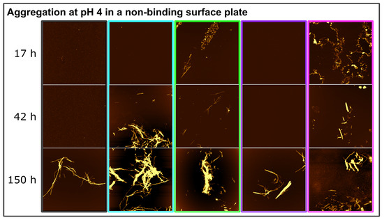 - Murray, A.N.; Palhano, F.L.; Bieschke, J.; Kelly, J.W. Surface adsorption considerations when working with amyloid fibrils in multi-well plates and eppendorf tubes. Protein Sci. 2013, 22, 1531–1541. [Google Scholar] [CrossRef]