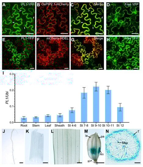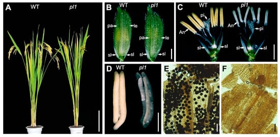 3.2. Normal Rice Male Development Requires a Certain Amount of Functional PL1 Protein