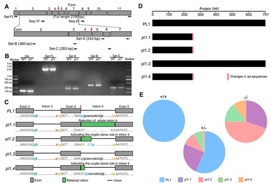 2.3. Normal Splicing of PL1 Is Altered by pl1 Mutation