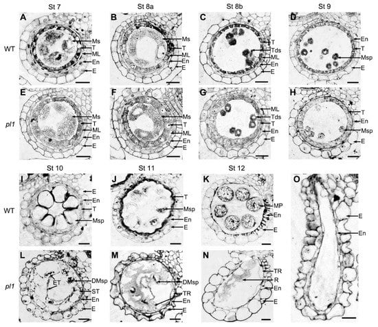- Zhang, D.B.; Luo, X.; Zhu, L. Cytological analysis and genetic control of rice anther development. J. Genet. Genom. 2011, 38, 379–390. [Google Scholar] [CrossRef] [PubMed]