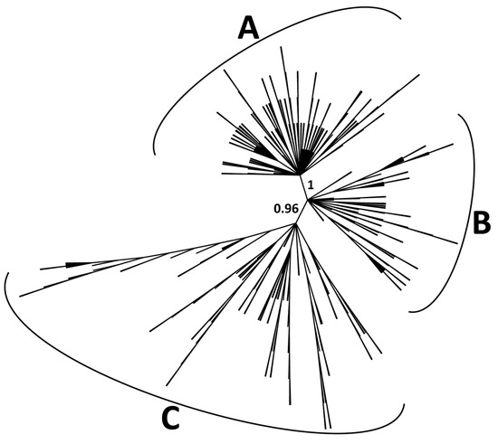 - Felsenstein, J. Confidence limits on phylogenies: An approach using the bootstrap. Evolution 1985, 39, 783–791. [Google Scholar] [CrossRef]