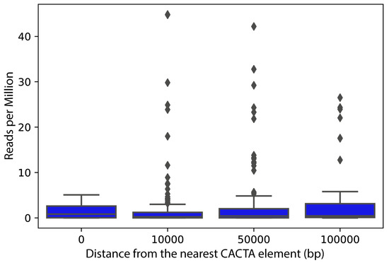 4.4. Analysis of Proximity of CACTA Elements to Genes