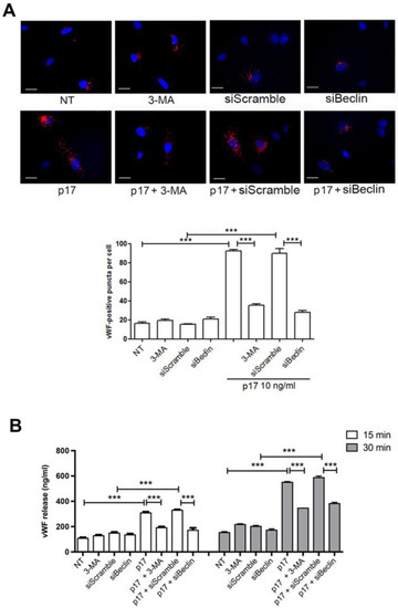 Altogether, our data support the key role played by autophagy in the p17-triggered vWF secretion.