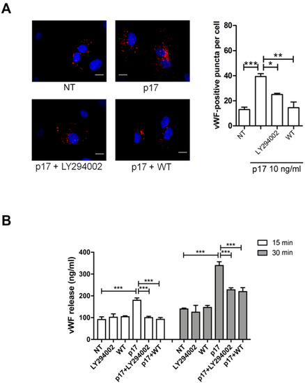 2.4. P17-Triggered vWF Storage and Secretion Requires Activation of PI3K