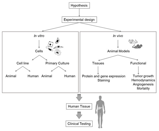 Despite the fact that in angiogenesis studies in vitro assays can be faster and reproducible, in vivo assays are physiologically more relevant. Moreover, in vitro assays do not represent the same conditions and do not allow study of the complex physiological interactions that occur in vivo. However, an in vivo angiogenic response also presents inconveniences, as it is a time-consuming and costly method, and it influences other parallel processes such as fibrogenesis and inflammation. Furthermore, angiogenesis image analysis requires advanced skills to avoid inter-observer variability. Finally, in vitro and in vivo models are essential to identify potential targets in neovascular processes in order to apply in new therapies in patients with chronic liver disease.