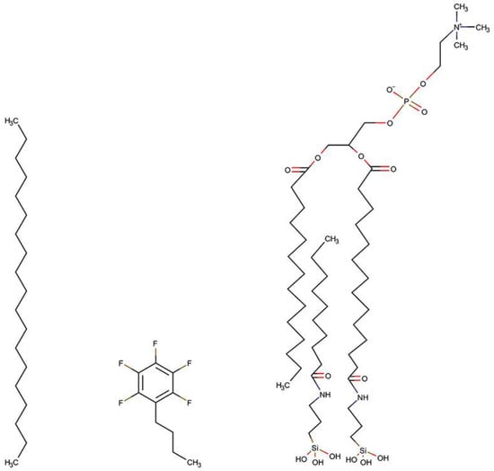 Chromatographic columns studied in this work included Kinetex C18 (K-C18, Phenomenex, Torrance, CA, USA), Kinetex F5 (K-F5, Phenomenex, Torrance, CA, USA), and IAM.PC.DD2 (Regis Technologies, Morton Grove, IL, USA). Technical parameters of the selected columns are summarized in Table 5. Surface coverage (α) was determined according to the Berendsen-de-Galan equation [33]. According to the structures of the ligands chemically-bonded to the stationary phases (Figure 5) and the information from the manufacturer, the K-C18 column is expected to demonstrate hydrophobic interactions due to octadecyl carbon chain, while K-F5 may exhibit diverse interactions. Alongside the classical reversed-phase retention mechanism dominated by hydrophobic interactions, π-π electrons of the benzene ring could also affect retention. IAM.PC.DD2 columns are expected to exhibit a dual nature since the immobilized PC ligands contain both hydrophobic regions and charged centers, resulting in both hydrophobic and electrostatic interactions.
