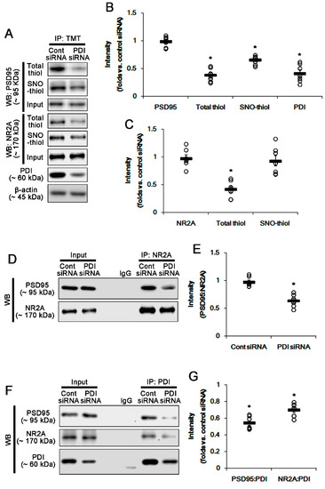 2.3. Effect of PDI Knockdown on S-Nitrosylation and Disulfide-Bond Formation on PSD95