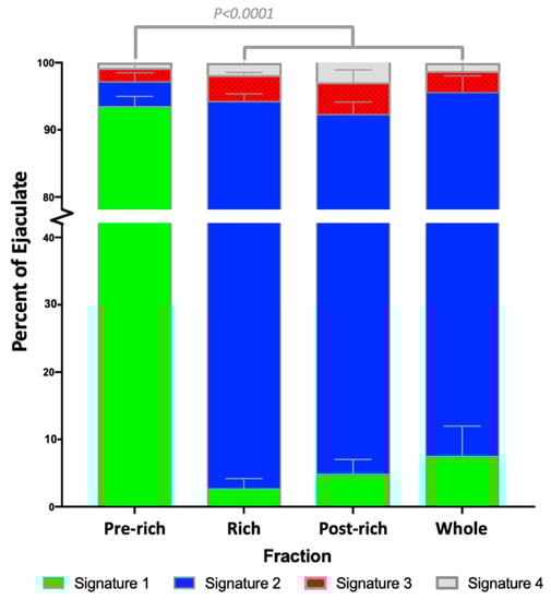 - Hebles, M.; Dorado, M.; Gallardo, M.; González-Martínez, M.; Sánchez-Martín, P. Seminal quality in the first fraction of ejaculate. Syst. Biol. Reprod. Med. 2015, 61, 113–116. [Google Scholar] [CrossRef] [PubMed]