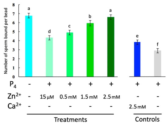 2.3. Externally Added Zinc Ions Inhibit Sperm Release from Glycans of the Oviductal Sperm Reservior