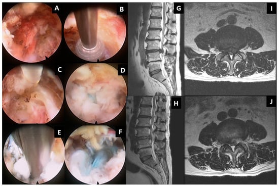 - Kang, T.; Park, S.Y.; Kang, C.H.; Lee, S.H.; Park, J.H.; Suh, S.W. Is biportal technique/endoscopic spinal surgery satisfactory for lumbar spinal stenosis patients? A prospective randomized comparative study. Medicine (Baltim) 2019, 98, e15451. [Google Scholar] [CrossRef]