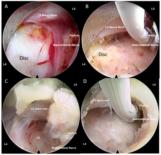 - Kim, H.S.; Paudel, B.; Jang, J.S.; Lee, K.; Oh, S.H.; Jang, I.T. Percutaneous endoscopic lumbar discectomy for all types of Lumbar Disc Herniations (LDH) Including severely difficult and extremely difficult LDH cases. Pain Physician 2018, 21, E401–E408. [Google Scholar] [PubMed]