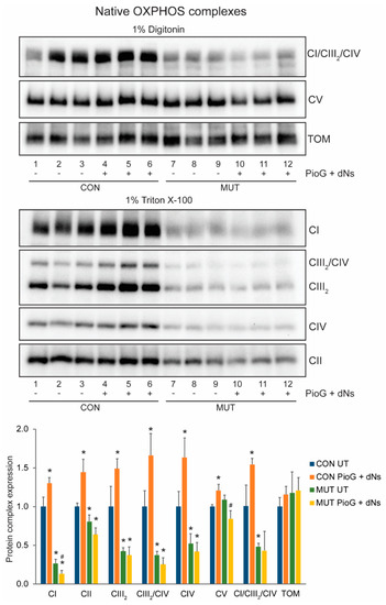 2.3. PioG + dNs Treatment Increased Oxidative Phosphorylation Protein Steady-State Levels in Control Cybrids, but Not in MUT Cybrids