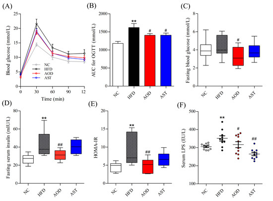 2.1. AOD Attenuated Glucose Intolerance and IR