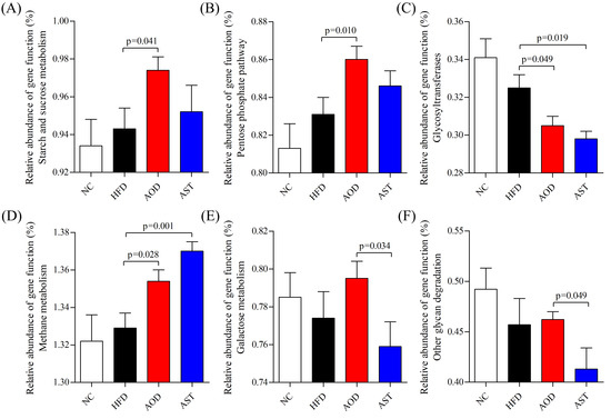 2.5. AOD and AST Modulated Gut Microbiota Under an HFD