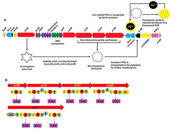 In addition to meeting the iron requirements of Pseudomonas strains, PVD is also essential for the infection and colonization of host tissues by strains that are pathogenic toward animals or plants. Furthermore, the ability of PVD-deficient P. aeruginosa mutants to cause infection is significantly reduced [22,23,24], and PVD has been demonstrated to be an important colonization factor in P. syringae that is required for the production of the toxin tabtoxin [25].