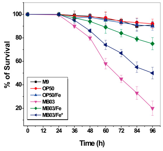 2.5. Role of Iron in the MB03–C. elegans Interaction