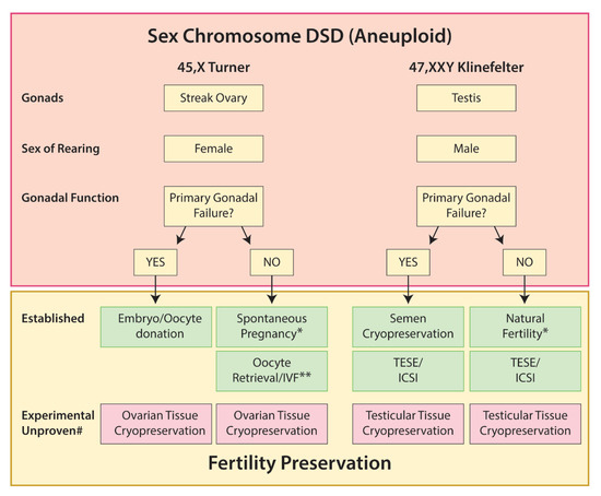 Options for fertility preservation in 45,X and 47,XXY are summarized in Figure 2.