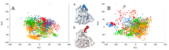 - Roe, D.R.; Cheatham, T.E. PTRAJ and CPPTRAJ: Software for Processing and Analysis of Molecular Dynamics Trajectory Data. J. Chem. Theory Comput. 2013, 9, 3084–3095. [Google Scholar] [CrossRef]