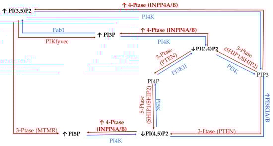 - Fruman, D.A.; Meyers, R.E.; Cantley, L.C. Phosphoinositide Kinases. Annu. Rev. Biochem. 1998, 67, 481–507. [Google Scholar] [CrossRef] [PubMed]
