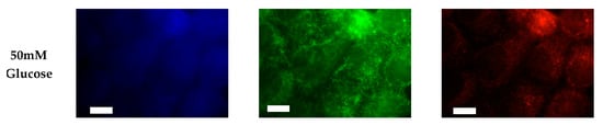 Breast cancer cell lines were normally cultured in DMEM with 10% NCS at 37 °C in 5% CO2 (v/v) as previously described [,,,]. Cells were plated and at ~80% confluency, cells were rinsed twice in phosphate buffered saline solution, and then incubated for 24 h in no glucose DMEM, enriched with 10% v/v NCS and a 0.5 kg/L glucose stock solution for final solutions at 5.5 mM (normal), 10 mM (transition), and 25 and 50 mM (hyperglycemia) [].