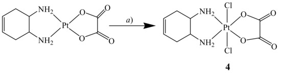 Synthesis of cis,trans,cis-[Pt(OXA)Cl2(DACHEX)] (4). a) CH3CN, PhICl2, 60 °C, 1 h.