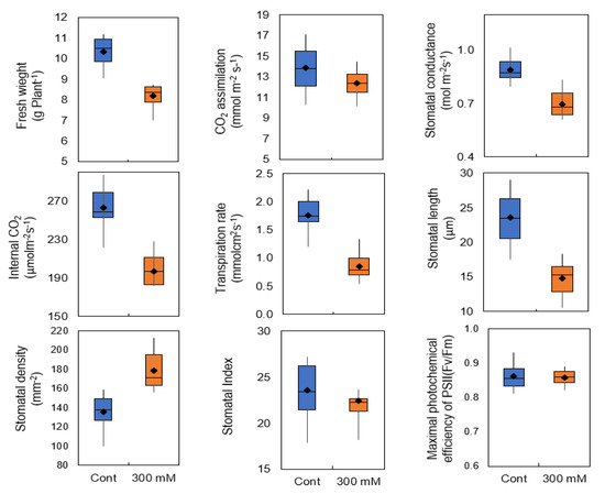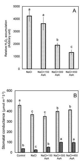 2.6. H2O2 Accumulation in Guard in Response to Salt Stress and Ascorbic Acid