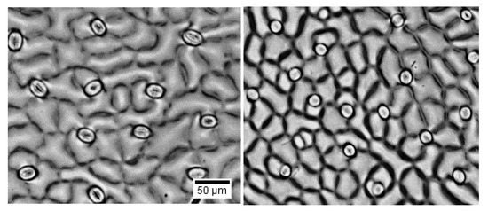 - Weyers, J.D.B.; Travis, A. Selection and Preparation of Leaf Epidermis for Experiments on Stomatal Physiology. J. Exp. Bot. 1981, 32, 837–850. [Google Scholar] [CrossRef]