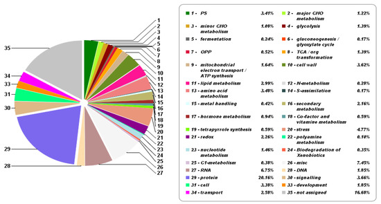 - Schwacke, R.; Ponce-Soto, G.Y.; Krause, K.; Bolger, A.M.; Arsova, B.; Hallab, A.; Gruden, K.; Stitt, M.; Bolger, M.E.; Usadel, B. MapMan4: A Refined Protein Classification and Annotation Framework Applicable to Multi-Omics Data Analysis. Mol. Plant 2019, 12, 879–892. [Google Scholar] [CrossRef]