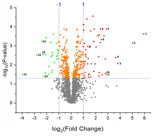 - Cox, J.; Hein, M.Y.; Luber, C.A.; Paron, I.; Nagaraj, N.; Mann, M. Accurate proteome-wide label-free quantification by delayed normalization and maximal peptide ratio extraction, termed MaxLFQ. Mol Cell Proteomics 2014, 13, 2513–2526. [Google Scholar] [CrossRef] [PubMed]